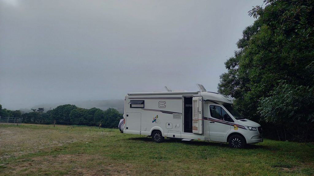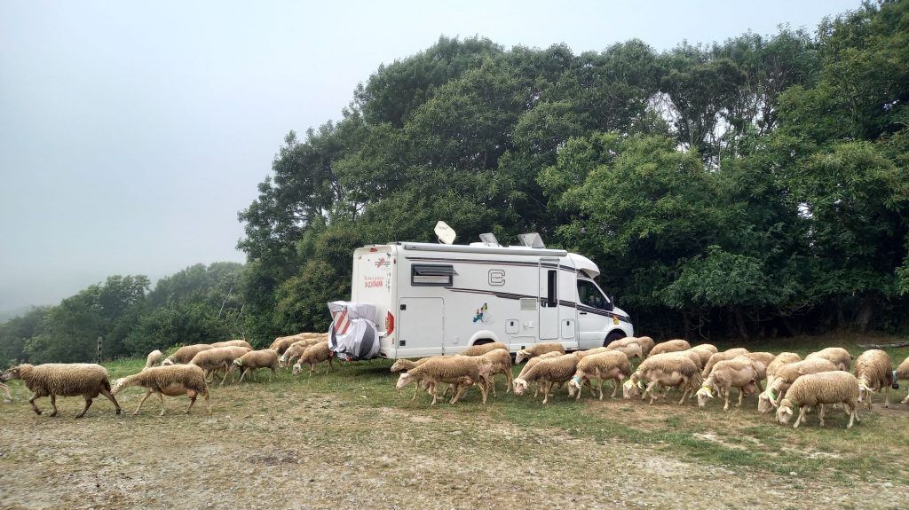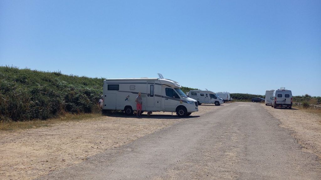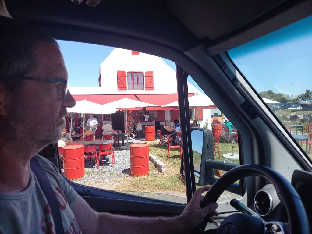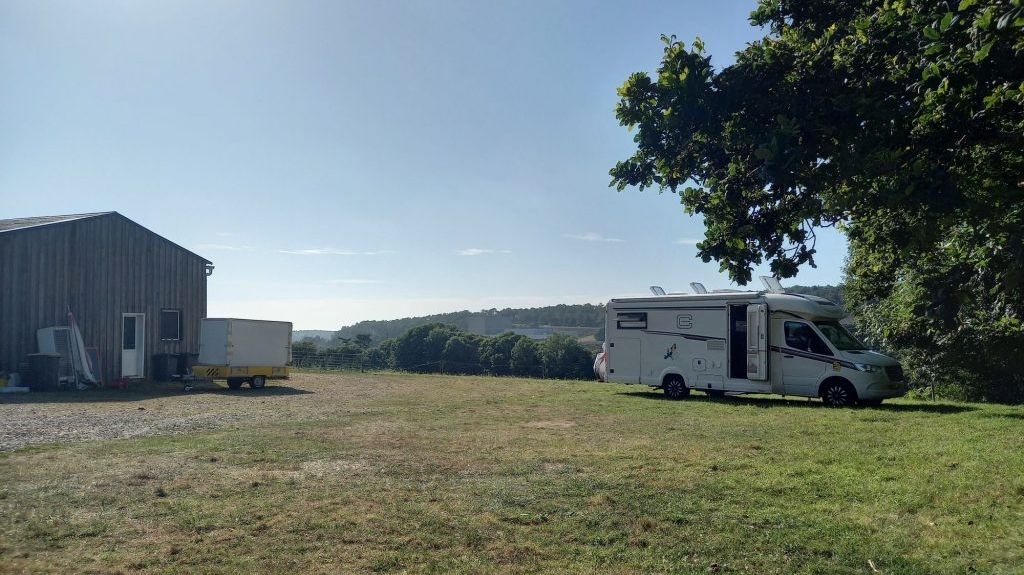 Dann fahren wir zu einer Schafsfarm 🐑 – wieder aus France Passion: La Bergerie de Crozon. 16:40 Uhr sind wir da und machen erstmal alle Fenster und Dachluken auf. Der Durchzug tut gut.