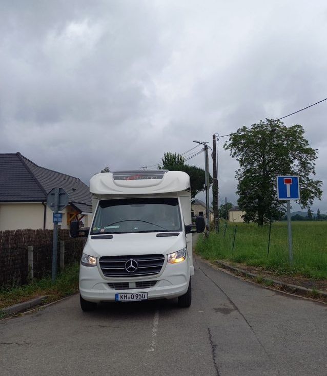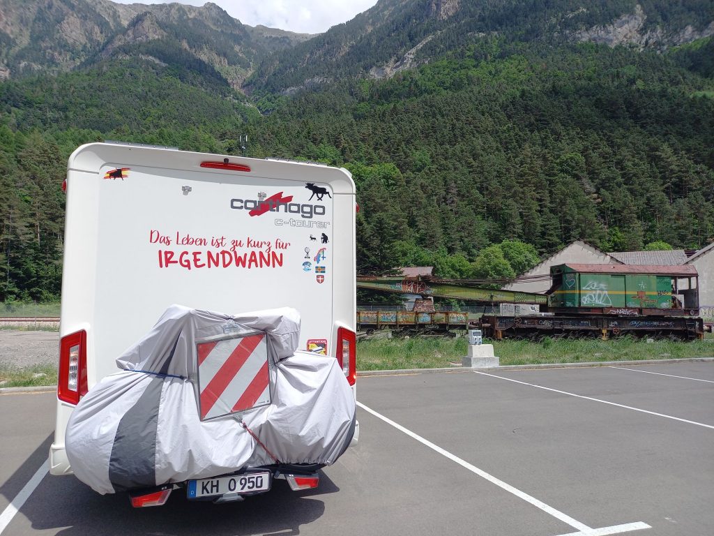 … und stehen auf dem offiziellen Stellplatz für 9 € inkl. Strom.