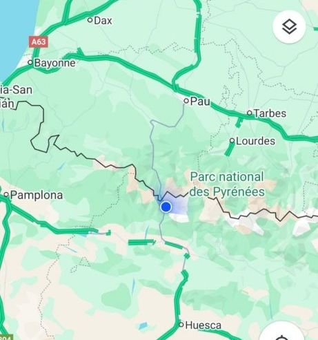 14:30 Uhr: Grenze Frankreich / Spanien am Col du Somport auf ca. 1650m üNN.
