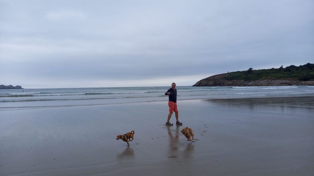 Unterwegs halten wir an einer tollen Bucht und nutzen die Gelegenheit, unsere Hunde mal frei am Strand laufen zu lassen.